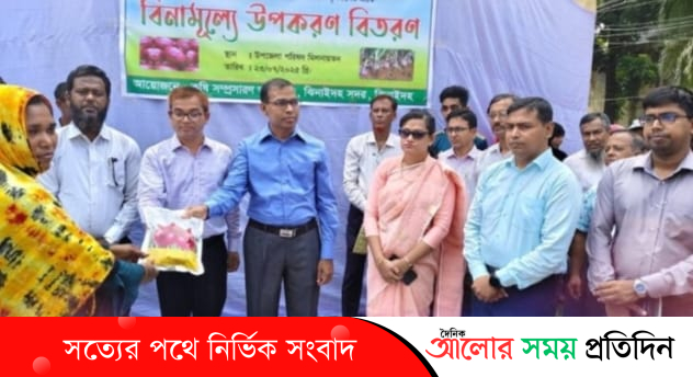 ঝিনাইদহ সদর উপজেলা পরিষদ মিলনায়তনে ক্ষুদ্র ও প্রান্তিক কৃষকদের মাঝে বিনামূল্যে কৃষি উপকরণ বিতরণ করা হয়েছে।