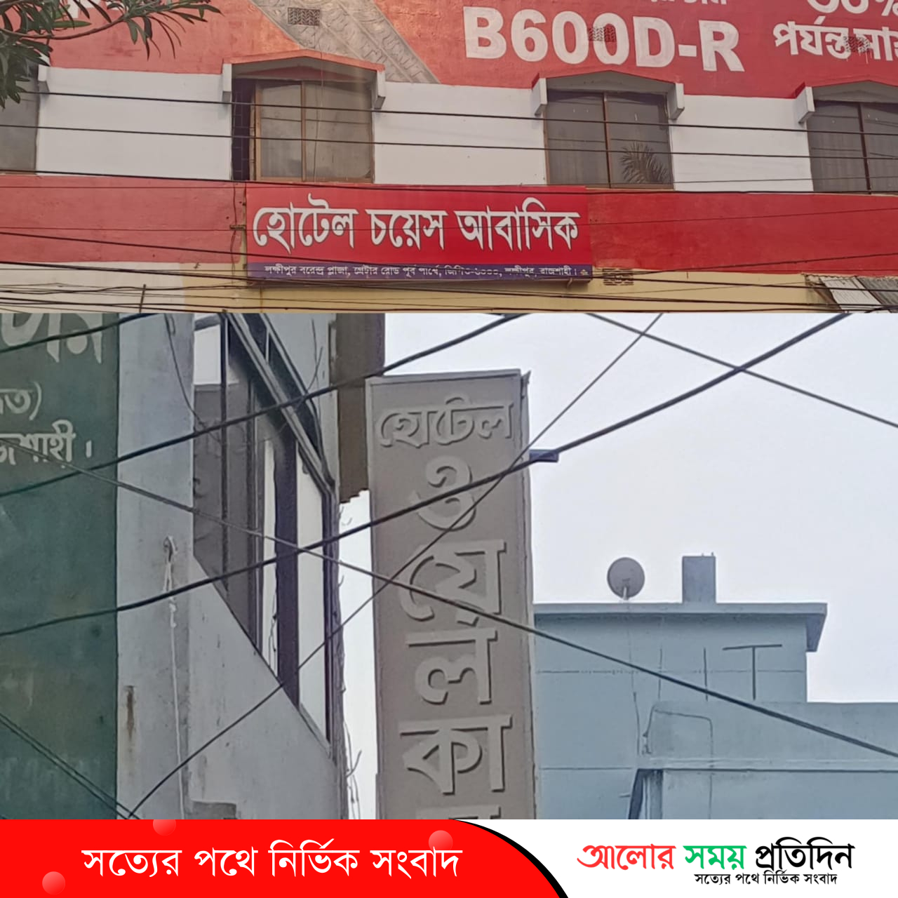 রাজশাহী মহানগরীর সাহেববাজার স্বর্ণকারপট্টির ‘হোটেল ওয়েলকাম’ ও লক্ষিপুর জিপিও অপজিটে চয়েজ