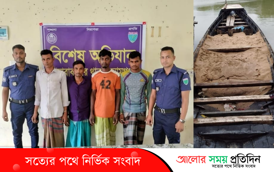 গত শনিবার দিবাগত রাত অনুমান ১.৪৫ মিনিটের সময় দোয়ারাবাজার থানার অফিসার ইনচার্জ (ওসি) মোঃ জাহিদুল হকের দিক নির্দেশনায় অত্র থানার মনিরুল ইসলাম, এসআই(নি:)/রফিজুল মিয়া, এএসআই(নি:)/আশরাফ খাঁন সঙ্গীয় ফোর্সসহ অভিযান পরিচালনা করিয়া ১০/০৮/২০২৫খ্রিঃ তারিখ গভীর রাতে উপজেলার শরীফপুর গ্রামের আব্দুল মতিন এর বাড়ীর পশ্চিম পাশে চিলাই নদী হইতে অবৈধভাবে বালু উত্তোলনের সময়ে আসামী ১। কমর আলী (৩৪) পিতা-মৃত আইয়ুবুর রহমান, ২। রবিবুল ইসলাম (২৫) ৩। শামসুল ইসলাম (২০) উভয় পিতা-মৃত শান্তি মিয়া, ৪। খালেদ মিয়া (১৯) পিতা-আজাদ মিয়া, সর্ব সাং-রায়নগর, ইউ/পি-০৩নং দোয়ারাবাজার সদর, থানা-দোয়ারাবাজার, জেলা-সুনামগঞ্জদেরকে আটক করেন এবং তাদের দখলে থাকা (ক) ০১ (এক) টি বালু ভর্তি কাঠের তৈরী নৌকা জব্দতালিকামূলে জব্দ করেন।
