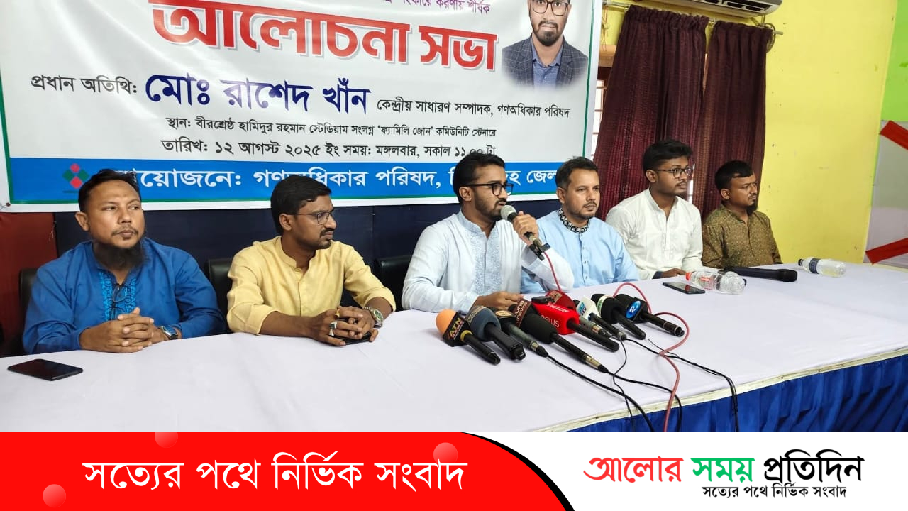 ঝিনাইদহ জেলা গণঅধিকার পরিষদের সভাপতি শাখাওয়াত হোসেনের সভাপতিত্বে অনুষ্ঠিত আলোচনা সভায় আরও বক্তব্য রাখেন সাবেক সাধারণ সম্পাদক ইকবাল জাহিদ রাজন, যুব অধিকারের সভাপতি রাকিবুল হাসান রকিব, যুবনেতা মো. মিশন আলী, ছাত্র অধিকার পরিষদের সভাপতি আব্দুল্লা আল মামুন, সাধারণ সম্পাদক মো. রায়হান হোসেন রিহান, মো. মাহাফুজ রহমান, মো. হালিম পারভেজ ও মো. নাহিদ হাসনান।