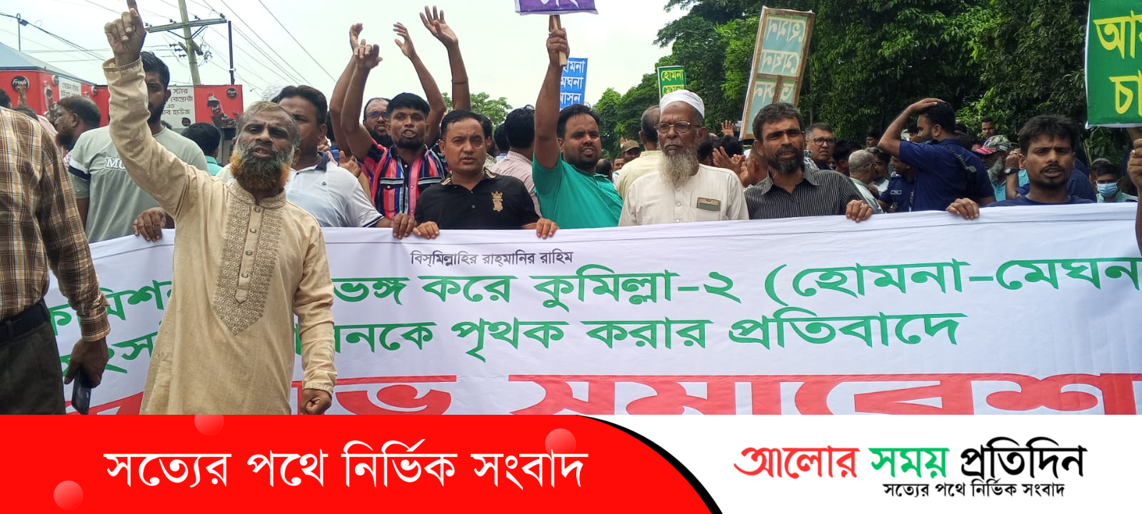 গজারিয়া উপজেলার ভাটেরচর নতুন রাস্তায় মানববন্ধন এ সময় তাদের দাবির প্রতি একাত্বতা প্রকাশ করেন বিএনপির কেন্দ্রীয় সাংগঠনিক সম্পাদক অধ্যক্ষ সেলিম ভূঁইয়া,পরে "দাবি মোদের একটাই হোমনা মেঘনা আসন চাই"এই স্লোগানে ঢাকা চট্টগ্রাম মহাসড়ক অবরোধ করে বিক্ষোভ মিছিল করে।এ সময় মহাসড়কের দুপাশে দীর্ঘ যানজটের সৃষ্টি হয়। এতে করে যাত্রী সাধারণ চরম ভোগান্তিতে পড়ছে।
