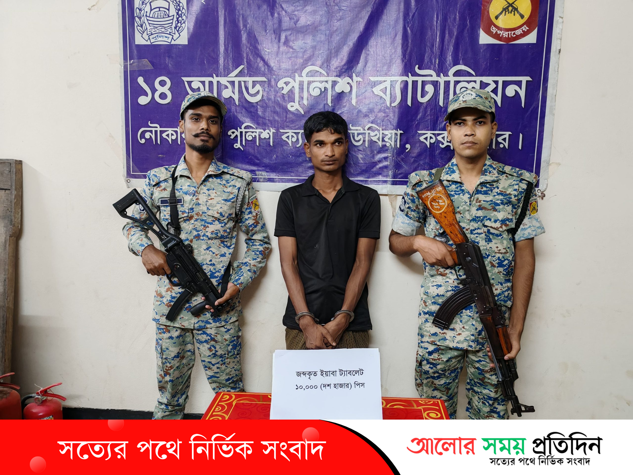 রবিবার (১৯ অক্টোবর) রাত ১০টার দিকে গোপন সংবাদের ভিত্তিতে নৌকার মাঠ পুলিশ ক্যাম্পের একটি বিশেষ টিম উখিয়ার বালুখালী ৭ নম্বর ক্যাম্পে অভিযান চালায়। এসময় ১০ হাজার পিস ইয়াবাসহ আবুল কালাম (২২) নামে এক রোহিঙ্গা যুবককে আটক করা হয়। তার পিতা সাদুলা মিয়া ও মাতা মোছা. মসোনা। এফ.সি.এন নম্বর ৫০৪৭৬৮। তিনি শেল্টার ৬৫-বি, ব্লক এ-৭, ক্যাম্প-০৭, থানা-উখিয়া, কক্সবাজারে বসবাস করেন।