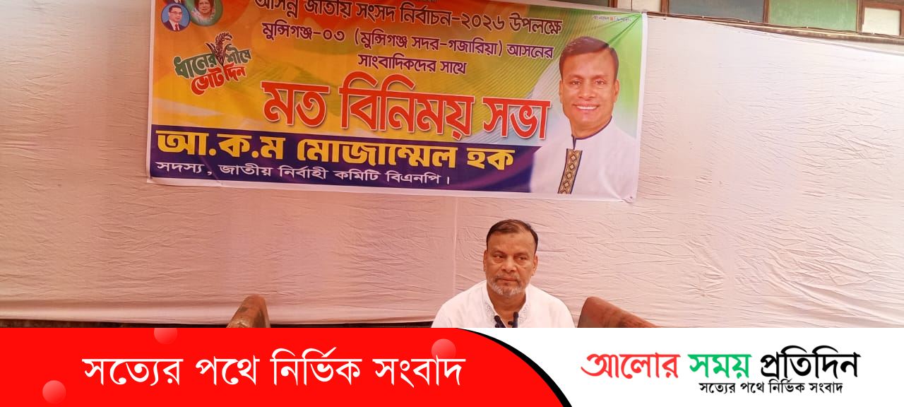 মুন্সীগঞ্জে গজারিয়া উপজেলা আসন্ন জাতীয় সংসদ নির্বাচন ২০২৬ইং উপলক্ষ্যে মুন্সীগঞ্জ-৩(সদর-গজারিয়া) আসনে মনোনয়ন প্রত্যাশী বিএনপি'র জাতীয় নির্বাহী কমিটির সদস্য আ,ক,ম মোজাম্মেল হক মত বিনিময় করেছেন স্থানীয় সাংবাদিকদের সাথে।