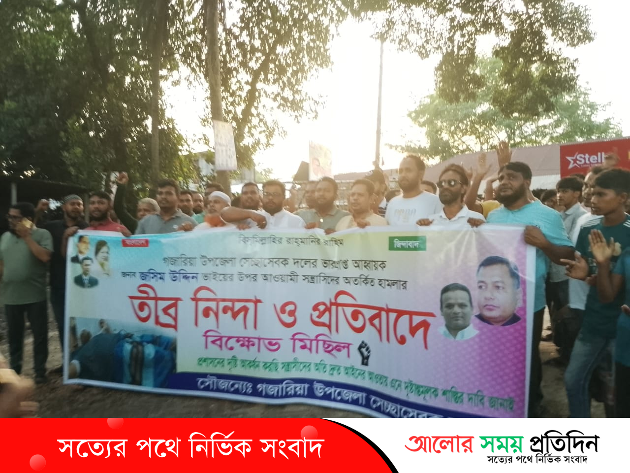 মুন্সিগঞ্জ গজারিয়ায় উপজেলা স্বেচ্ছাসেবক দলের ভারপ্রাপ্ত আহবায়ক মো:জসিম উদ্দিন এর উপর সন্ত্রাসী হামলার প্রতিবাদে বিক্ষোভ মিছিল ও প্রতিবাদ সভা করেছে উপজেলা স্বেচ্ছাসেবক দল।