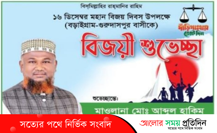 নাটোর-৪ গুরুদাসপুর-বড়াইগ্রাম আসনের জামায়াতে ইসলামী মনোনীত এমপি প্রার্থী মাওলানা আব্দুল হাকিম, ১৬ ডিসেম্বর মহান বিজয় দিবসের শুভেচ্ছা জানিয়েছেন।