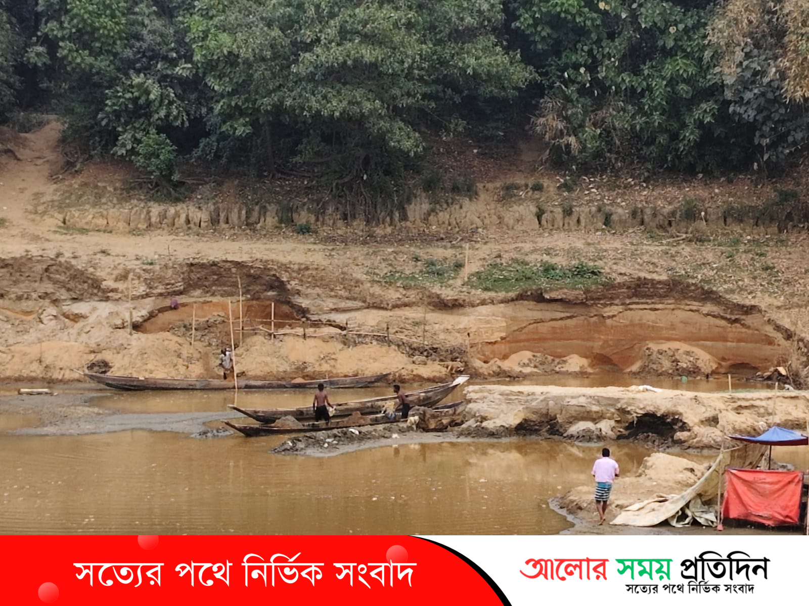 স্থানীয়রা ধারণা করছেন, প্রশাসনের যোগসাজশে বালু সিন্ডিকেট প্রকাশ্যে তীর কেটে বালু লুট করছে। পরিবেশ সংরক্ষণ আইন অনুযায়ী নদীর তীর থেকে বালু উত্তোলন সম্পূর্ণ নিষিদ্ধ হলেও, বাস্তবে এসব নিয়ম অমান্য করছে বালু খেকোরা।