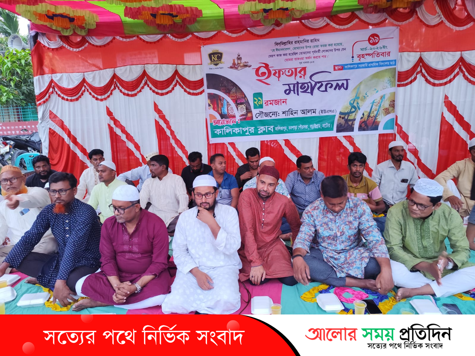নাটোরের বড়াইগ্রাম উপজেলার কালিকাপুর সরকারি প্রাথমিক বিদ্যালয় মাঠে কালিকাপুর ক্লাবের উদ্যোগে এক দোয়া ও ইফতার মাহফিল অনুষ্ঠিত হয়েছে।