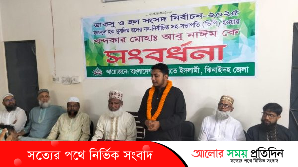 এ.এস আব্দুস সামাদ ঝিনাইদহ জেলা প্রতিনিধিঃ- ঢাকা বিশ্ববিদ্যালয় কেন্দ্রীয় ছাত্র সংসদ (ডাকসু) নির্বাচনে ফজলুল হক মুসলিম হলের নবনির্বাচিত সহ-সভাপতি (ভিপি) খন্দকার মো. আবু নাঈমকে সংবর্ধনা দেওয়া হয়েছে। বৃহস্পতিবার সকালে ঝিনাইদহ
